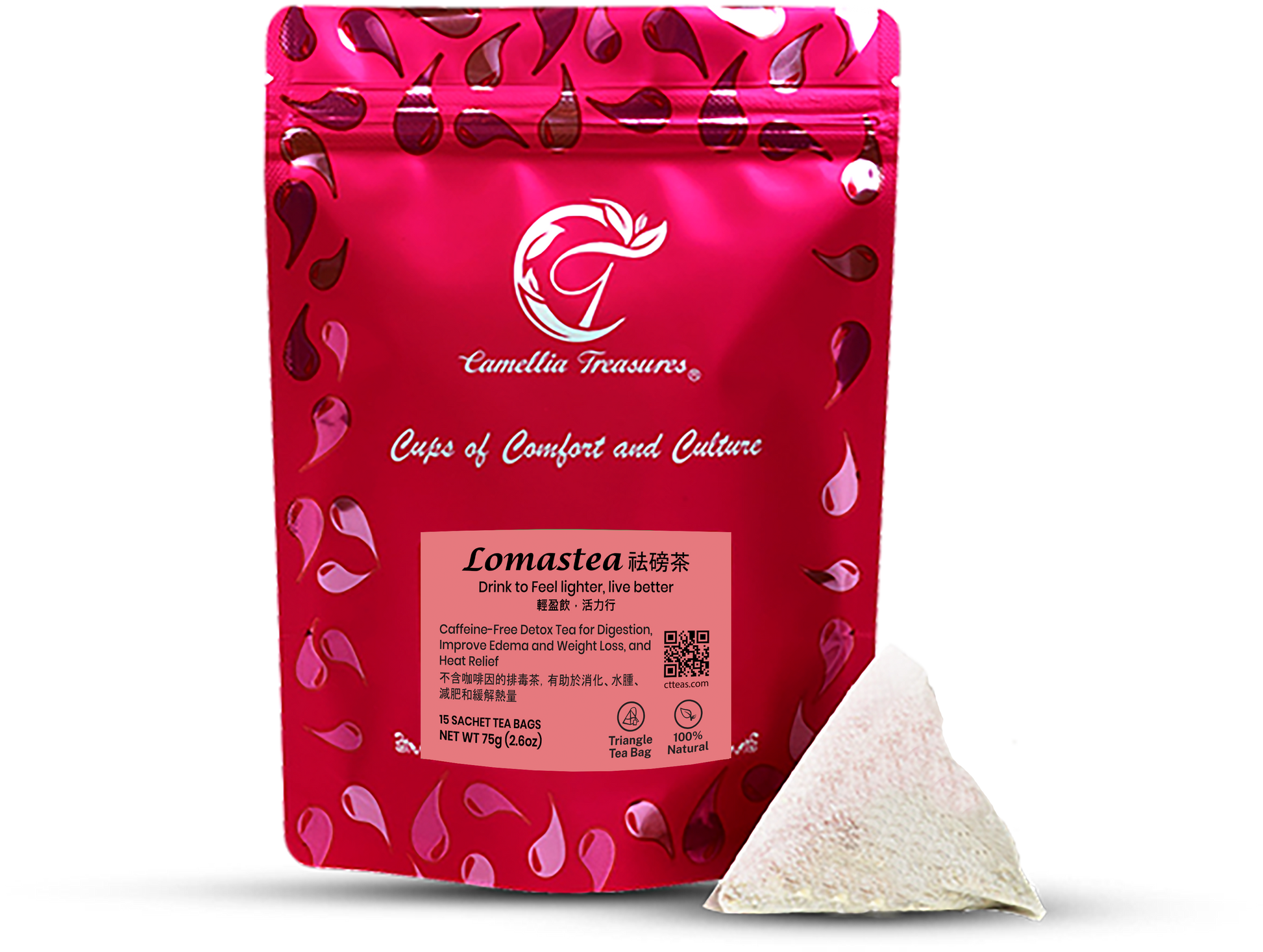 祛磅茶 採用 100% 天然原料製成,包括荷葉、決明子、冬瓜乾、炒薏米和其他天然草藥。不含任何人工添加物或咖啡因。